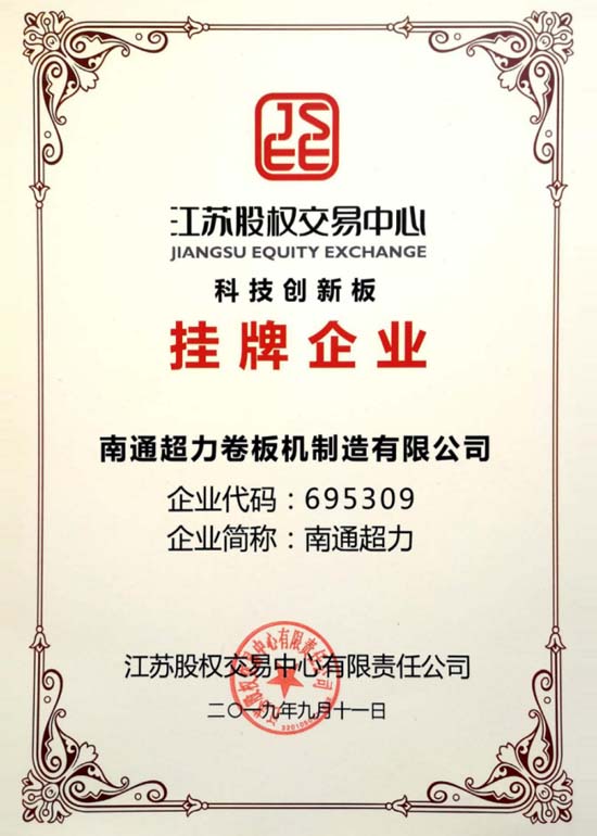 - 南通超力卷板機(jī)制造公司承擔(dān)國家火炬計(jì)劃