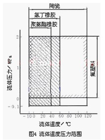常用襯里材料有氟塑料、聚氨酯橡膠、氯丁橡膠和陶瓷等。近年有采用高純氧化鋁99.99%AI2O3)陶瓷制成襯里的,但只限中小口徑傳感器。氯丁橡膠和玻璃鋼用于非腐蝕性或弱腐蝕性液體,如工業(yè)用水、廢污水及弱酸堿,價格*為低廉。氟塑料具有優(yōu)良的耐化學(xué)腐蝕性,但耐磨性差,不能用于測量礦漿液。氟塑料中*早應(yīng)用的是聚四氟乙烯,因與測量管間僅靠壓貼,無粘結(jié)力,不能用于負壓管道,后開發(fā)各種改性品種,實現(xiàn)注塑成形,與測量管有較強結(jié)合力,可用于負壓。聚氨酯橡膠有*好的耐磨耗性,但耐酸堿的腐蝕性較差,它的耐磨性相當(dāng)于天然橡膠的10倍,適用于煤漿、礦漿、介質(zhì)溫度低于40~60/70℃的場合。氧化鋁陶瓷有*好的耐磨耗性和對強酸堿的耐磨腐蝕性,耐磨性約為聚氨酯橡膠的10倍,適用于具有腐蝕性的礦漿,但性脆,安裝夾緊時易碎,可用于較高溫度(120~140/180℃)但要防止溫度劇變,如通蒸汽滅菌,一般溫度突變不能大于100℃,升溫150℃ 要有10min時間。 通用型EMF幾種材料的壓力、溫度大體適用范圍可參閱下圖。