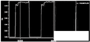 灌裝頭的*終出口部分為10~14mm的可更換縮口。通過(guò)縮口,可以產(chǎn)生背壓,一般縮口內(nèi)置蜂窩狀虹吸管,保證灌裝前后的管道滿(mǎn)管。從測(cè)試的流量波形上看,10mm的灌裝頭產(chǎn)生適當(dāng)?shù)淖枘嵝Ч?,流量曲線(xiàn)較穩(wěn)定。