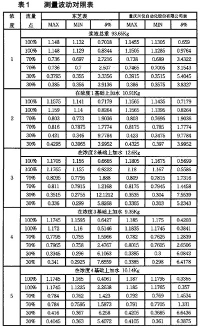 在造紙行業(yè)有大量的紙漿液體需要測量,就會用到大量的流量測量儀表,目前在造紙行業(yè)中用于測量流量的儀表,主要有電磁流量計(jì)等儀表,因?yàn)?a href="http://www.sunrisebj.cn">電磁流量計(jì)具有非常強(qiáng)的優(yōu)點(diǎn),所以非常適合在紙漿的流量測量中使用。在紙漿實(shí)驗(yàn)裝置上,使用串聯(lián)在同一管道上該公司生產(chǎn)的防爆型電磁流量計(jì)價(jià)格與日本東芝的防爆型電磁流量計(jì)價(jià)格測量不同濃度和流量的紙漿漿液,以驗(yàn)證其可靠性。波動率對比實(shí)驗(yàn)結(jié)果表明,該產(chǎn)品用于紙漿漿液測量時(shí)能夠很好地克服漿液噪聲。在滿流量測量時(shí),上述實(shí)驗(yàn)中各濃度下漿液測量穩(wěn)態(tài)波動率均在1%以內(nèi);其它流量下測量時(shí),由于實(shí)驗(yàn)系統(tǒng)主管道上游分流控制流速不穩(wěn),進(jìn)而導(dǎo)致測量穩(wěn)態(tài)波動率相對較大,甚至達(dá)到近7‰ 但由表1可知,在各種漿液濃度及各流量點(diǎn)下,凱銘儀表有限公司生產(chǎn)的防爆型電磁流量計(jì)價(jià)格的穩(wěn)態(tài)波動率始終與日本東芝防爆型電磁流量計(jì)價(jià)格的測量結(jié)果一致,從而表明實(shí)驗(yàn)系統(tǒng)的測量結(jié)果能準(zhǔn)確反映實(shí)際漿液流量大小。 說明:MAX、MIN分別表示該組數(shù)據(jù)測得流速的的*大值和*小值,單位m/s。