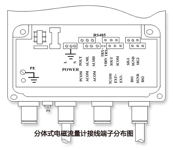 四、測廢水計量表轉(zhuǎn)換器接線端子接線圖說明