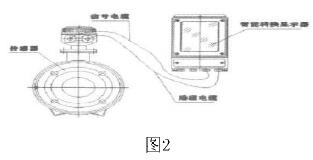 自來水廠電磁流量計是由流量傳感器和轉(zhuǎn)換器(也叫顯示器)兩大部分組成。測量管上下裝有激磁線圈,通激磁電流后產(chǎn)生磁場穿過測量管,一對電*裝在測量管內(nèi)壁與液體相接觸,引出感應(yīng)電勢,送到轉(zhuǎn)換器。激磁電流則由轉(zhuǎn)換器提供。如圖2所示: