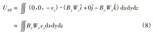 式中V為管道法蘭式電磁流量計(jì)傳感器測量空間;W→為權(quán)函數(shù)。在直角坐標(biāo)系(x,y,z)中,式(5)可以轉(zhuǎn)換為