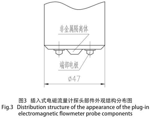 通過(guò)大量的試驗(yàn),對(duì)探頭端部外型結(jié)構(gòu)亦采用特殊設(shè)計(jì),從而消除兩個(gè)電*之間的擾流現(xiàn)象,同時(shí)亦消除因通電產(chǎn)生磁場(chǎng),導(dǎo)致兩個(gè)電*吸附介質(zhì)中的鐵屑而影響測(cè)量精度和死區(qū)效應(yīng),增強(qiáng)了輸出信號(hào)的穩(wěn)定性,從而提高傳感器準(zhǔn)確度和抗干擾性。通過(guò)結(jié)構(gòu)的優(yōu)化設(shè)計(jì),使用壽命更長(zhǎng),酸水流量計(jì)探頭局部,如圖 3 所示。