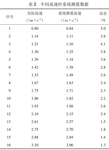 由表 2 測(cè)量數(shù)據(jù)可知,系統(tǒng)在測(cè)量低流速液體時(shí)(流速小于 1 m/s)誤差較大,達(dá)到 5%,當(dāng)待測(cè)液體的流速增大時(shí)(大于 1.4 m/s),誤差逐漸減小,基本維持在 3%以內(nèi)。由此可見(jiàn)系統(tǒng)具有較高的檢測(cè)精度,尤其是當(dāng)管道中的液體流速較高時(shí),系統(tǒng)的檢測(cè)誤差不超過(guò) 3%,達(dá)到了設(shè)計(jì)預(yù)期。