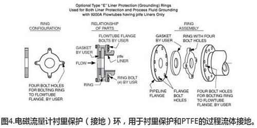 圖4.分體式污水流量表襯里保護(hù)(接地)環(huán),用于襯里保護(hù)和PTFE的過程流體接地。
