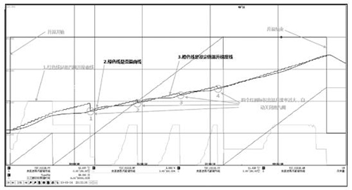 全過程升溫曲線見圖 2,從圖 2 可以看出,通過上述工藝參數(shù)的設(shè)定,從升溫開始到升溫結(jié)束,自來水流量計溫基本上是按照溫升梯度進(jìn)行升溫,當(dāng)出現(xiàn)溫升速率太快時,蒸汽閥自動關(guān)閉,無需人工參與,可以自動控制自來水流量計料液溫度的平緩上升,實(shí)現(xiàn)脫溶單元操作自控運(yùn)行。