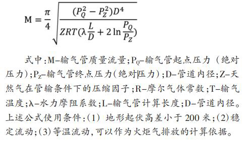 天津 LNG 設(shè)置兩座電磁流量計,單臺設(shè)計處理量 60t/h, 兩臺火炬并列運行,一用一備。自 LNG 儲罐及 BOG 系統(tǒng)來的超壓 BOG 經(jīng) PV 閥后進入火炬氣排放總管,經(jīng)分液罐沉淀 BOG 中夾雜的液滴后進入火炬燃燒放空。 雙氧水流量計設(shè)置四級排放,具體設(shè)置如表 1。 2 火炬氣排放量計算方法根據(jù)水平輸氣管流量計算基本公式: