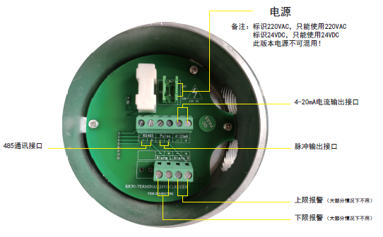 *一種:為黃色的表頭,這款是大泉流量新款的表頭,算是*三代一體式電磁流量計(jì)了吧,接線方法如下: