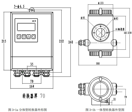 2.5.2 電磁流量表(含傳感器)外形及連接尺寸(見圖 2-2,表 2-4)