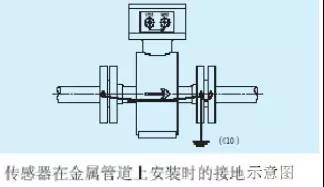 a.傳感器在金屬管道上安裝(金屬管道內(nèi)壁沒有絕緣涂層),按下圖接地。