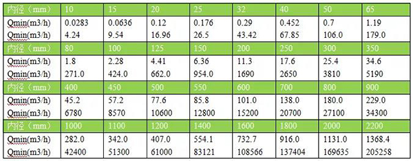 當(dāng)介質(zhì)流速達(dá)不到要求時,應(yīng)當(dāng)選用較小口徑這時應(yīng)使用異徑錐管或修改部分管道,使其與徑,但前后直管段至少須滿足:前直管段≥管道≥2DN(DN 為管徑)