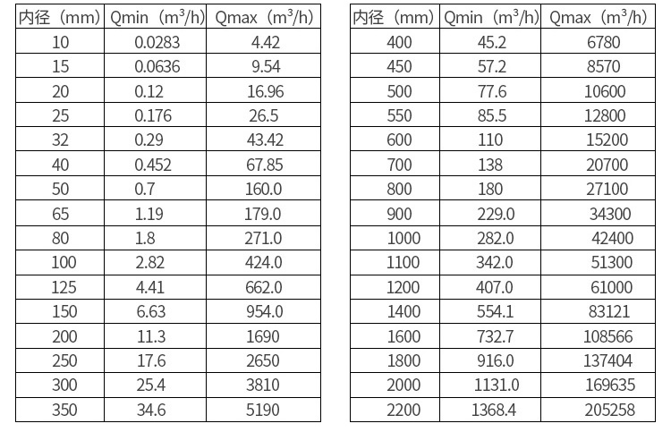 其中:V-流速(m/s)Q-流量(m/h)D-流量計(jì)口徑(mm)
