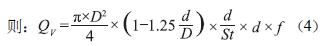 設(shè)Qv為體積流量;St為斯特勞哈爾數(shù)(也可為常數(shù)K);f為頻率(Hz/s);D為測(cè)量管內(nèi)徑;d為迎流面寬度。