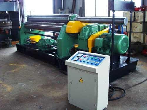 卷板機(jī)是一種將金屬板材卷彎成筒形、弧形或其它形狀工件的通用設(shè)備。根據(jù)三點(diǎn)成圓的原理,利用工件相對(duì)位置變化和旋轉(zhuǎn)運(yùn)動(dòng)使板材產(chǎn)生連續(xù)的塑性變形,以獲得預(yù)定形狀的工件。卷板機(jī)作為一個(gè)特殊的機(jī)器,它在工業(yè)基礎(chǔ)加工中占有重要的地位。凡是鋼材成型為圓柱型,幾乎都用卷板機(jī)輥制,是一種相當(dāng)實(shí)用的器械。 該產(chǎn)品廣泛用于鍋爐、造船、石油、木工、金屬結(jié)構(gòu)及其它機(jī)械制造行業(yè)。