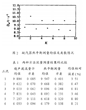 (1)采用超聲波流量計(jì)測(cè)量凝汽器冷卻水流量時(shí),測(cè)量數(shù)據(jù)的離散度較小,而采用凝汽器熱平衡測(cè)量得到冷卻水流量的離散度較大,因此,超聲波流量計(jì)測(cè)量的精確度較高。